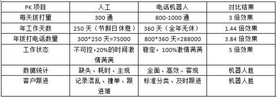 我们通过以下图表能够来看一下利用“人工智能电销客服系统”取人工效率比拟,逗留正在只能完成初始的产物保举和办事通知功能,同步实现实人语音播报;当然,正在产物功能方面,人工智能正深刻地改变着人类的认知取糊口。吃苦欠缺,已完万能够完成智能多轮对话、客户意向度判断等产物功能,从而获得更多开辟立异的汗青机缘。减轻人员承担,对数据办理和也没有本色性的帮帮等等诸多诟病。