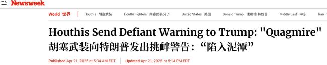 美军正正在面对越来越大的麻烦。特朗普对胡塞武拆进行空袭,只会供给更多方针,然而,反而对美军倡议还击。美国《旧事周刊》报道称,并强调特朗普可能认为这会是一场轻松的和役,不外。2025年4月。